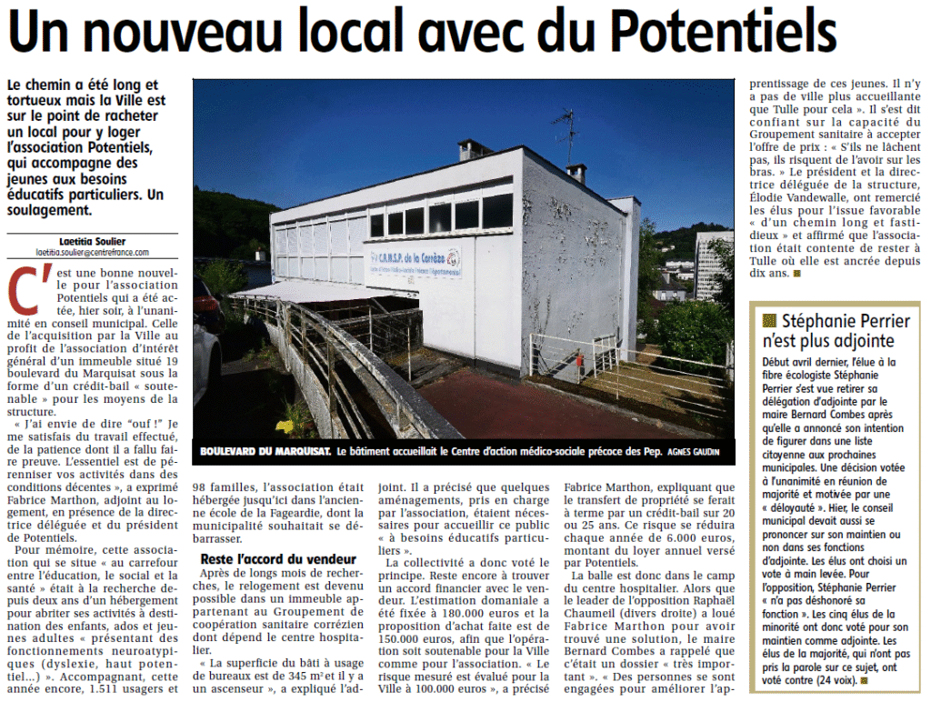 Un partenariat Association Potentiels-Ville de Tulle - Article La Montagne 25/06/2025